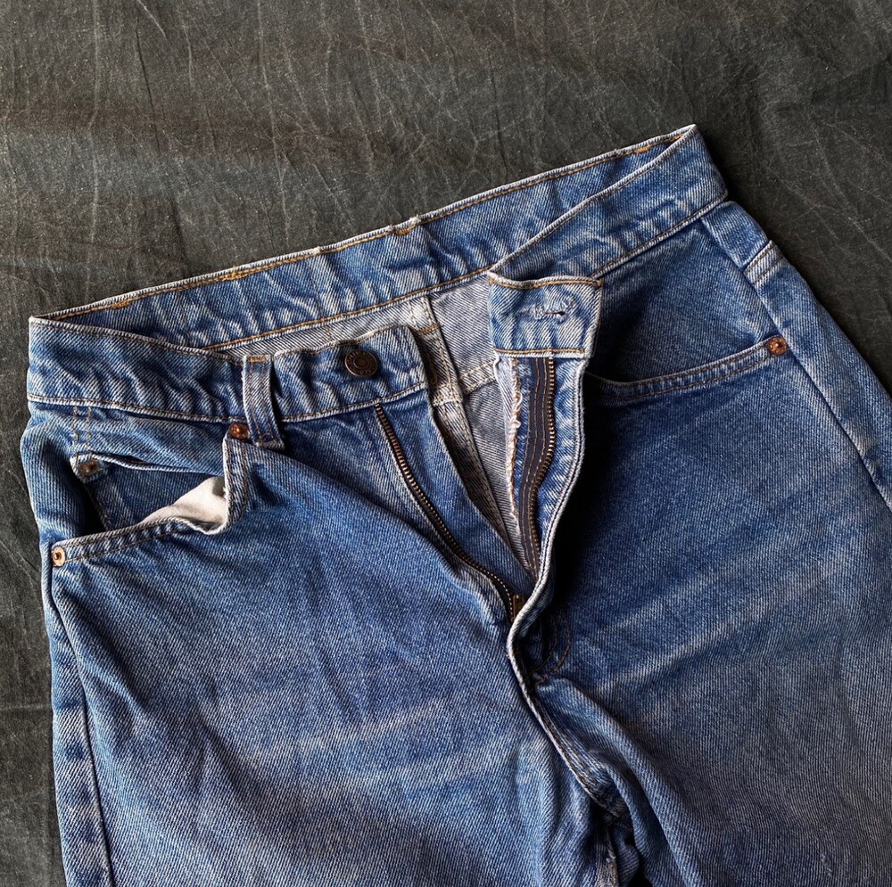 80년대 생산으로 추정되는 리바이스 550 데님 입니다 케어라벨 및 백포켓 유실로 인해